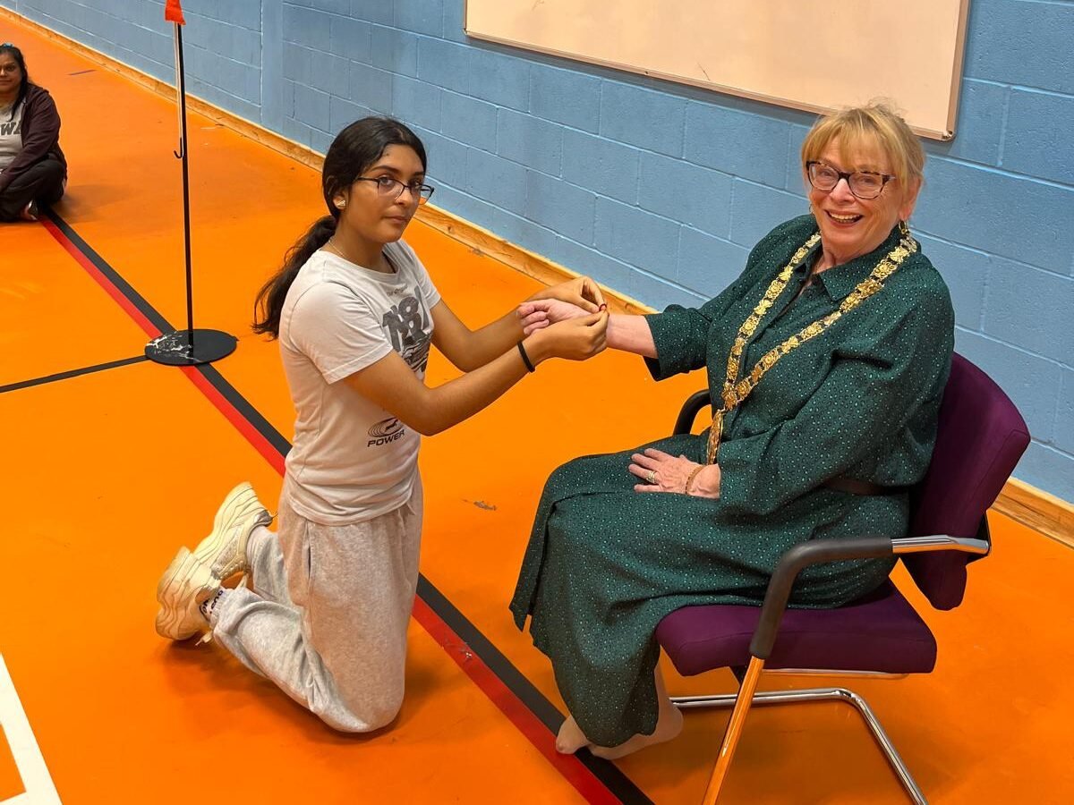 The Rugby Branch recently celebrated Raksha Bandhan (festival celebrating the bond of protection) in Rugby, welcoming distinguished guests including the Mayor of Rugby, Barbara Brown, representatives from the emergency services, and community guests Mr Ramesh Srivastava and Mrs Manjuben Srivastava from the Rotary Club.