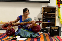 Mata Saraswati was worshipped through various Indian classical art forms. Talented artists and children came together to present performances that included Carnatic Vocal music , Mridangam (a classical percussion instrument) , Violin , Veena (a string instrument) , as well as Bharatanatyam and Kuchipudi (both classical Indian dance forms). The performances reflected the grace and devotion rooted in Indian culture and were deeply appreciated by everyone in attendance.